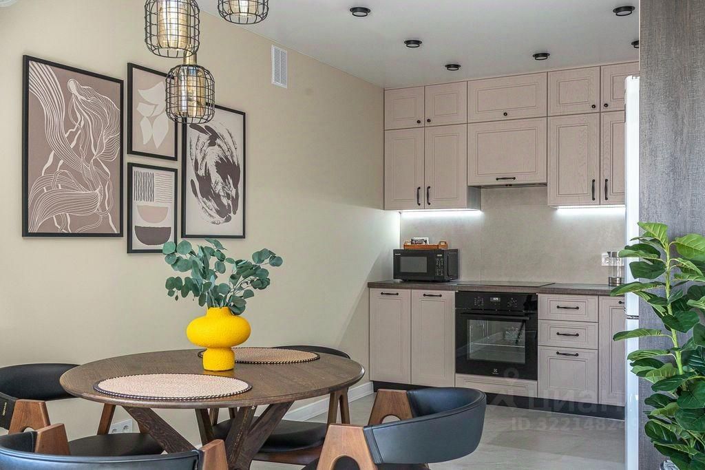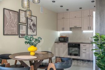 - Полноценно укомплектованная кухня: индукционная плита, духовка, чайник, микроволновая печь, посудомоечная машина, холодильник, гейзерная кофеварка, посуда и столовые приборы, фильтр-кувшин