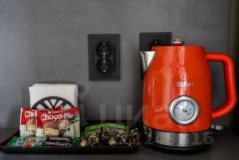 - Полноценно укомплектованная кухня: индукционная плита, духовка, чайник, микроволновая печь, холодильник, гейзерная кофеварка, посуда и столовые приборы, фильтр-кувшин