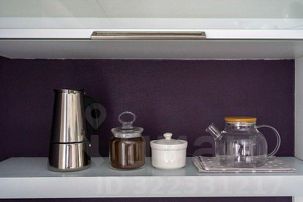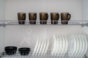 - Полноценно укомплектованная кухня: электрическая плита, духовка, чайник, микроволновая печь, холодильник, гейзерная кофеварка, посуда и столовые приборы, фильтр-кувшин