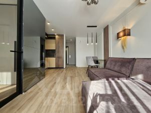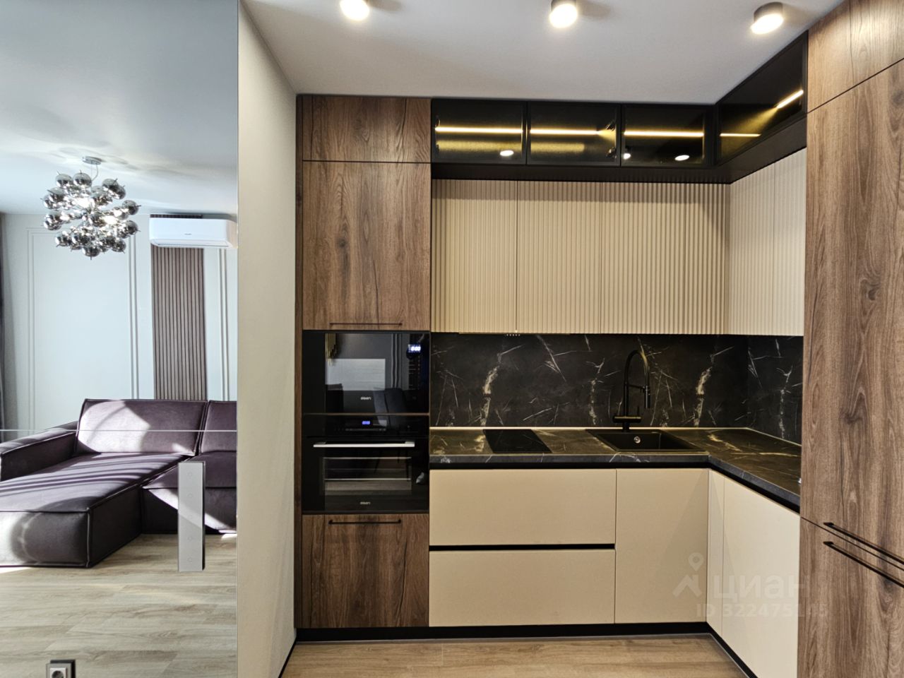В квартире очень продуманная эргономика пространства, мебель выполненная на заказ, бытовая техника ведущих фирм мира.