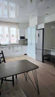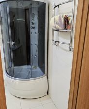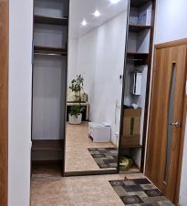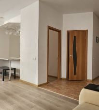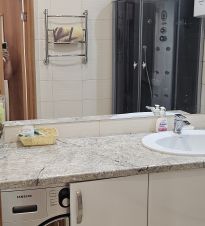 Большая прихожая. В квартире есть всё необходимое: система кондиционирования, телевизор, стиральная машина, холодильник, электрическая варочная панель, электрическая духовка, микроволновка, чайник, посуда, возможность подключения к Wi-Fi.