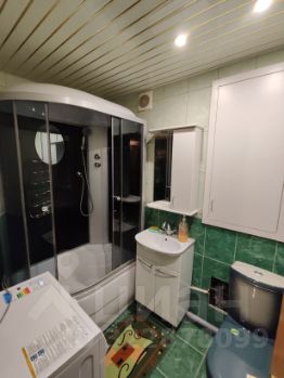 Ванная комната оборудована душевой кабиной. Окна выходят во двор, поэтому в квартире тихо и спокойно.