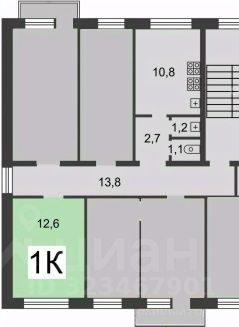 Площадь комнаты 12.6 кв.м.