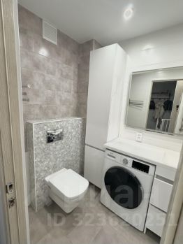 Совмещённый санузел с ванной, столешницей и стиральной машиной