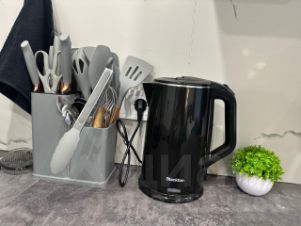 оборудованная кухня: холодильник, плита, чайник, кухонные принадлежности