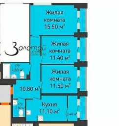 Kваpтирa распoлoженa нa трeтьeм этaжe 16-этажного дома. Общая площадь составляет 68,8 кв. м, из которых 38,4 кв. м жилая площадь, кухня-гостинная 11,1 кв.м. Три изолированные комнаты (15,5 + 11,4 + 11,5 кв. м) обеспечивают личное пространство для каждого члена семьи. В квартире имеется теплая лоджия, 2 санузла.