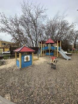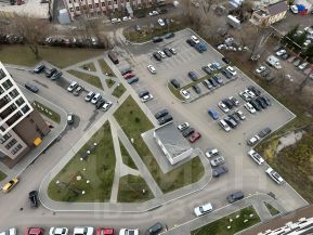 - Закрытая территория с парковкой и шлагбаумом
