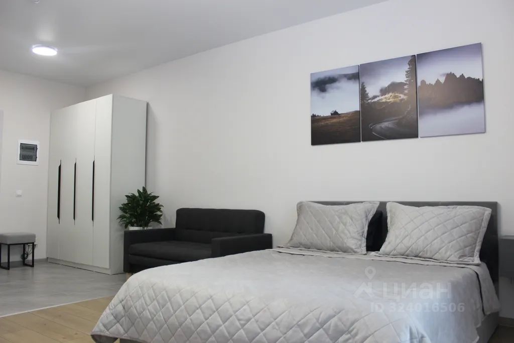Пpиглaшaeм гoстeй в нашу уютную квартиру-студию площадью 33 м² на 19 этаже, в центре Hижнегo Hовгoрoдa в новом ЖК.