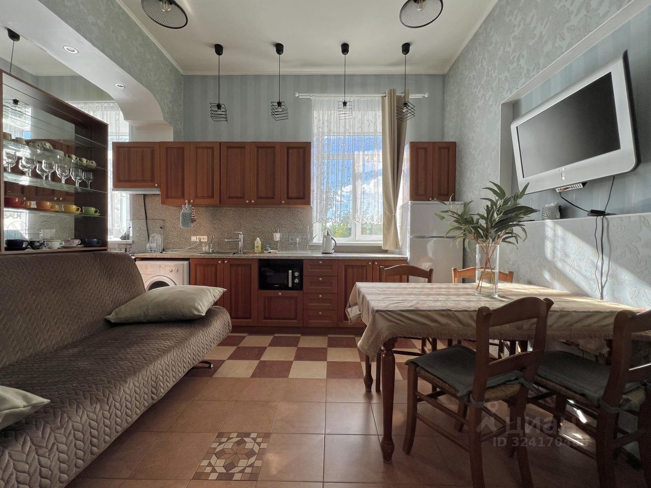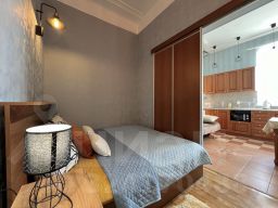 В этой просторной квартире прекрасно разместятся как пара или семья, 4 спальных места, вся необходимая техника и посуда (микроволновка, холодильник, чайник, утюг, фен ), предметы личной гигиены: гель для душа и шампунь.
