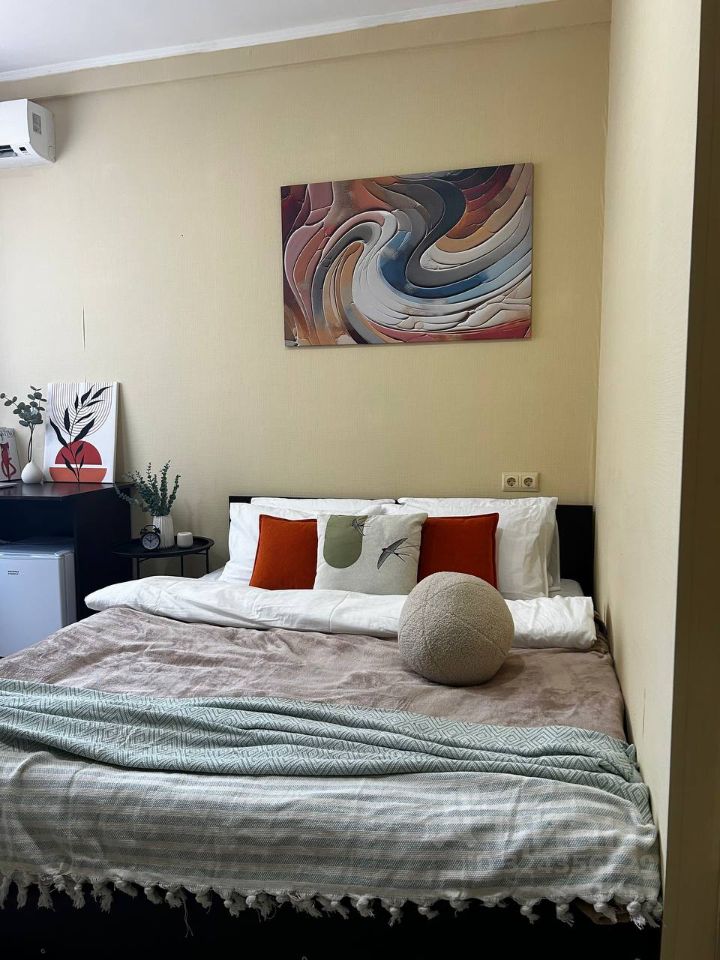При необходимости можно разложить диван для дополнительного спального места. Современный интерьер выполнен в элегантном стиле и теплых тонах.