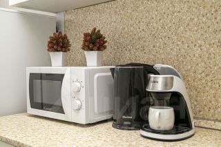 — Необходимая посуда, чайник, плита, , , микроволновая печь, холодильник, гладильная доска, сушилка, утюг. чай, кофе, конфетки, кофе машина (молотый кофе)