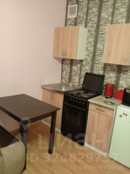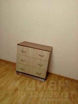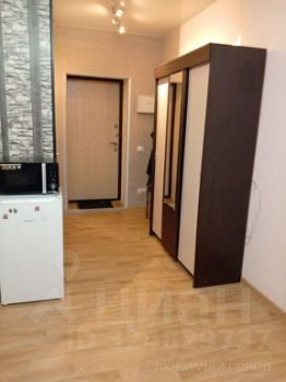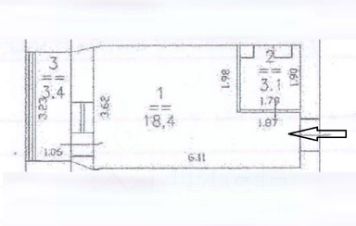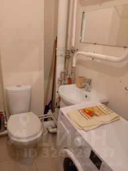 Студия имеет жилую площадь правильной прямоугольной формы, большую лоджию 3.4 кв.м, высота потолков 2.7 м. Полноценный санузел с ванной и стиральной машиной. Кухонный уголок со шкафами, электроплитой, холодильником - в один ряд. В жилом помещении спальное место - раскладной диван, платяной шкаф, комод, стол. Всё расположено просторно. Проведена линия МТС доступа к интернету (не подключен). В прихожей достаточно места, есть полка для обуви и вешалка. Общее состояние хорошее.