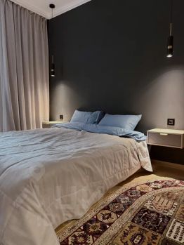 В квартире есть все необходимое для комфортного пребывания. Большая спальня, гостиная зона, зона кухни-столовой. Возможность свободно расположиться вчетвером. Ванная комната с тропическим душем, на кухне духовой шкаф, индукционная плита, микроволновая печь, вся необходимая посуда для приготовления любимых блюд.