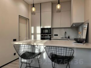 Плита, чайник, турка для кофе, духовка, микроволновая печь, холодильник, посуда, столовые приборы и посудомоечная машина