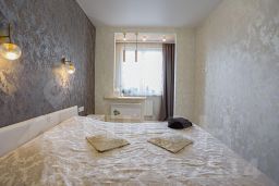 Квартира с просторной кухней - гостиной и спальней. В апартаментах: имеется необходимая для комфортного размещения мебель и техника: стиральная машина, холодильник, плита, духовка, микроволновка, угловая акриловая ванная, шторы блек аут. лоджия с мебелью. Две двуспальных кровати с ортопедическим матрасом, двуспальный диван moon разместят с комфортом до 6 взрослых гостей. Кабельное тв, скоростной интернет wi-fi. В квартире есть постельное бельё и полотенца, тапочки, посуда, чай, сахар, гель для душа и шампунь.