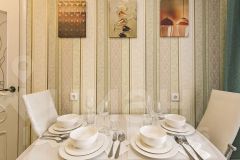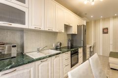 - Полностью оборудованная кухня: современная плита, чайник, микроволновая печь, холодильник, посуда и столовые приборы, фильтр-кувшин, духовка.