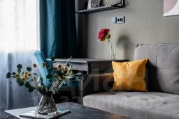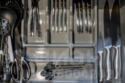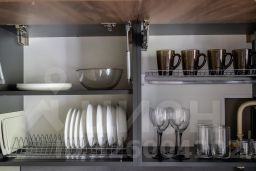 - Полноценно укомплектованная кухня: индукционная плита, духовка, чайник, микроволновая печь, холодильник, гейзерная кофеварка, посуда и столовые приборы, фильтр-кувшин