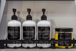 - Шампунь и бальзам для волос, гель для душа, соль для ванны и скраб для тела, ватные палочки, диски