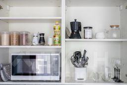 - Полноценно укомплектованная кухня: индукционная плита, чайник, микроволновая печь, холодильник, гейзерная кофеварка, посуда и столовые приборы, фильтр-кувшин