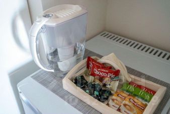 - Полностью укомплектованная кухня индукционная плита, духовка, гейзерная кофеварка, чайник, микроволновая печь, холодильник, посуда и столовые приборы, фильтр-кувшин