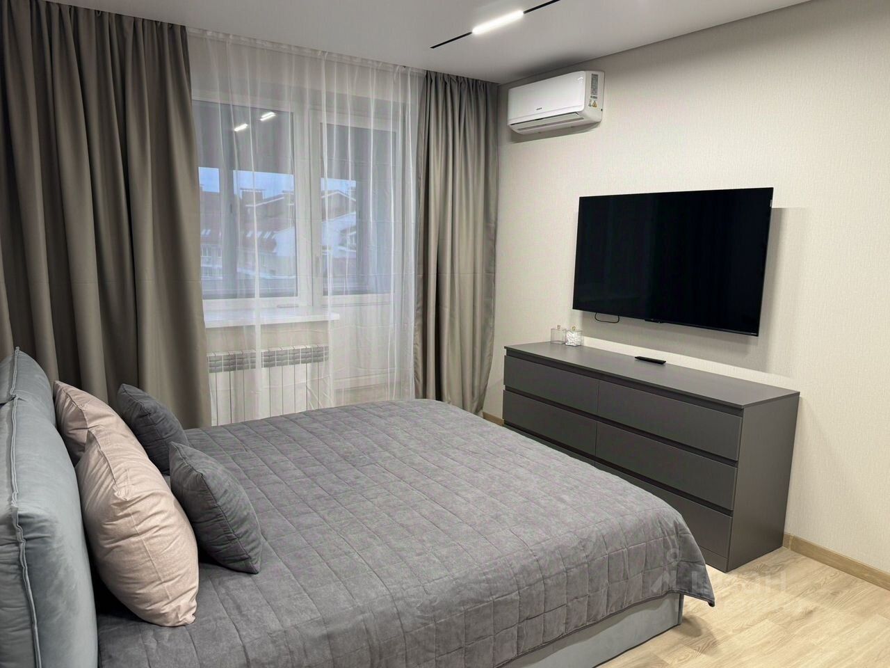 Одна изолированная тихая спальня; куxня co вceй необходимой тexникой.