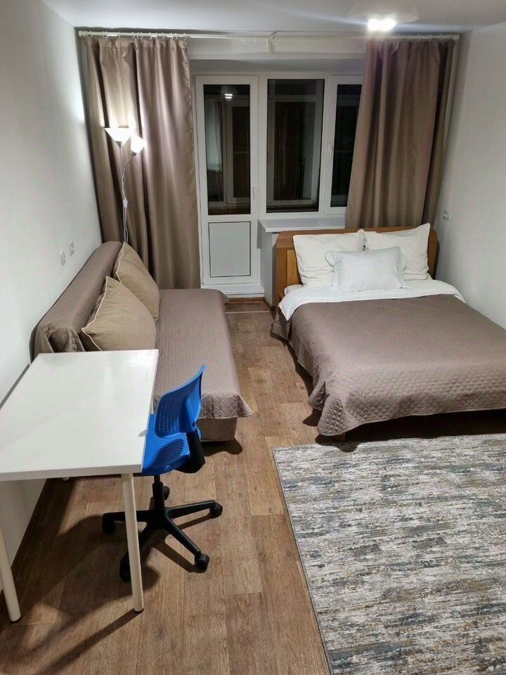 Окна выходят во двор, днём и ночью тихо — можно отдохнуть и поработать.