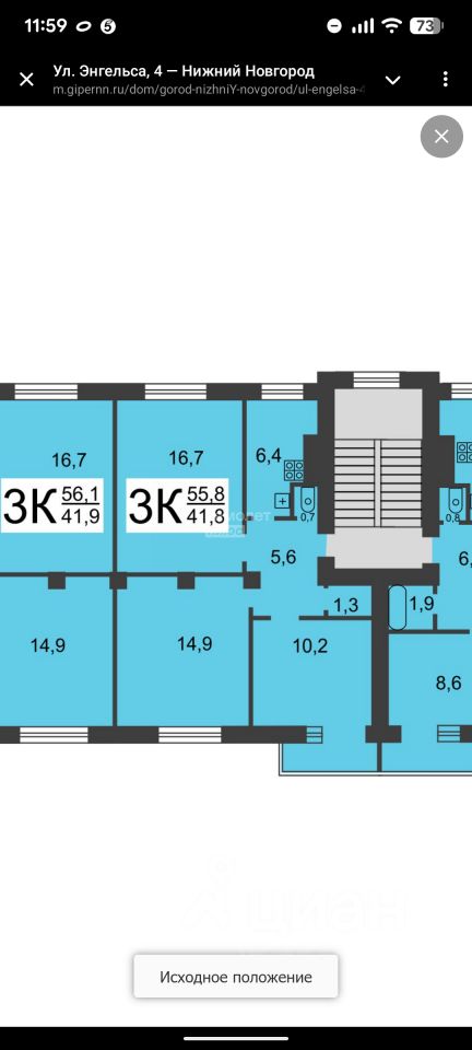 Сдаётся просторная 3-комнатная квартира с тремя изолированными комнатами (16.7 м², 14.9 м², 10.2 м²) на ул. Энгельса, д. 4.