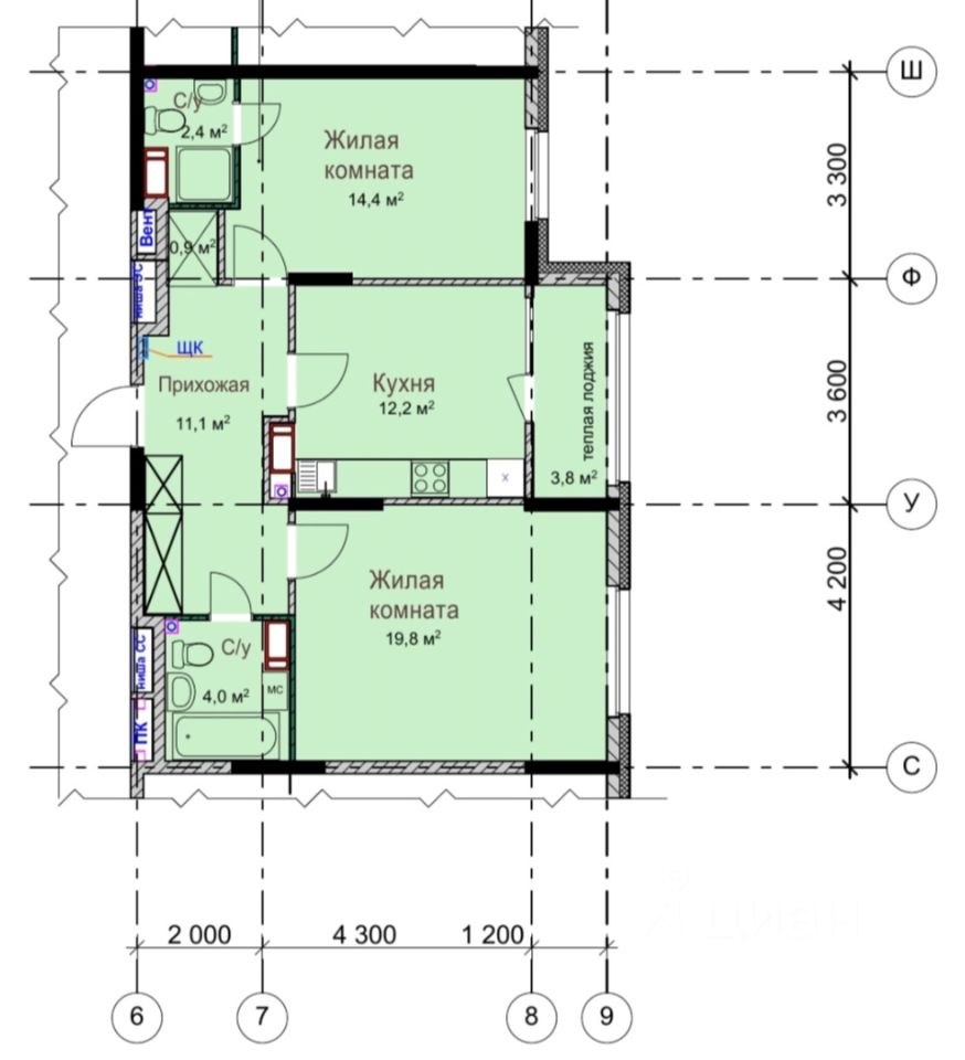 - современный качественный кухонный гарнитур, индукционная варочная поверхность, вытяжка, вместительный холодильник bosch, пмм bosch 60см, кухонный стол, стулья, тв, кондиционеры в комнатах, водонагреватель на случай отключения горячей воды летом. Если необходимо что-то ещё из мебели/техники, то можем обсудить.