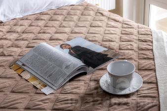 На каждую кровать или диван — полноценный комплект (2 подушки, 2 наволочки, двуспальное одеяло, пододеяльник, простыня, полотенце 70*130 см.)