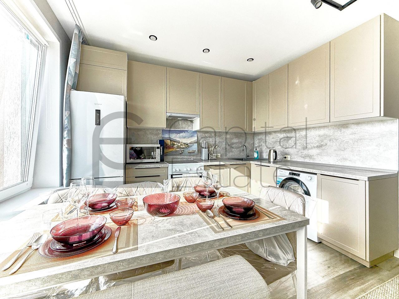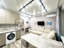 Квартира с дизайнерским ремонтом, продуманным до мелочей. В комнатах и на кухне есть вся необходимая мебель. Для вашего удобства установлены кондиционер, холодильник, стиральная машина, телевизоры. Санузел совмещенный, оснащён ванной.