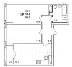 Комнаты: 16,6 и 14,6 кв.м. светлые и комфортные. Изолированные