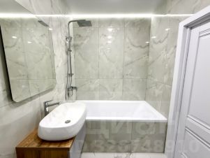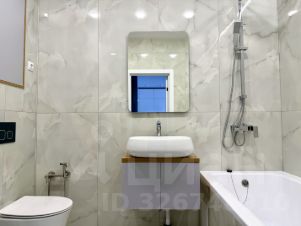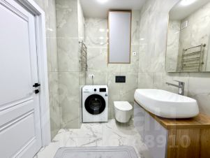 Санузел совмещенный, выполнен в современном стиле с качественной сантехникой и стиральной машиной.