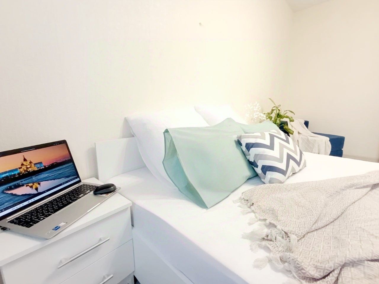На кровати размещение не больше 2х человек +1 ребенок до 3 х лет.Для двух гостей выдаётся один комплект постельного белья и 1 общее одеяло.