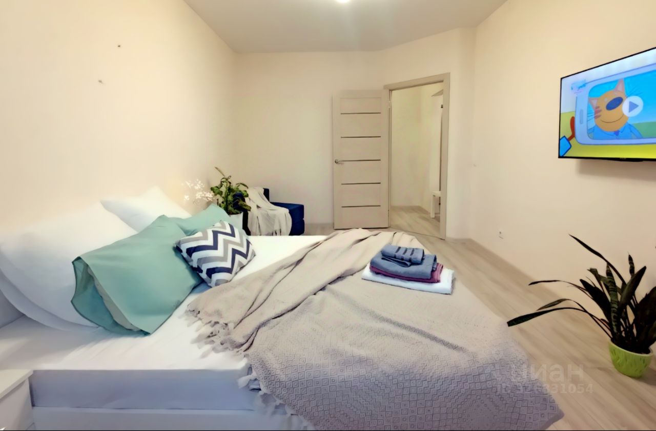 Просторная 1-комнатная квартира с просторной кухней. Балкон с панорамным видом на озеро и город.