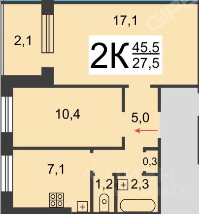 45,5 м²