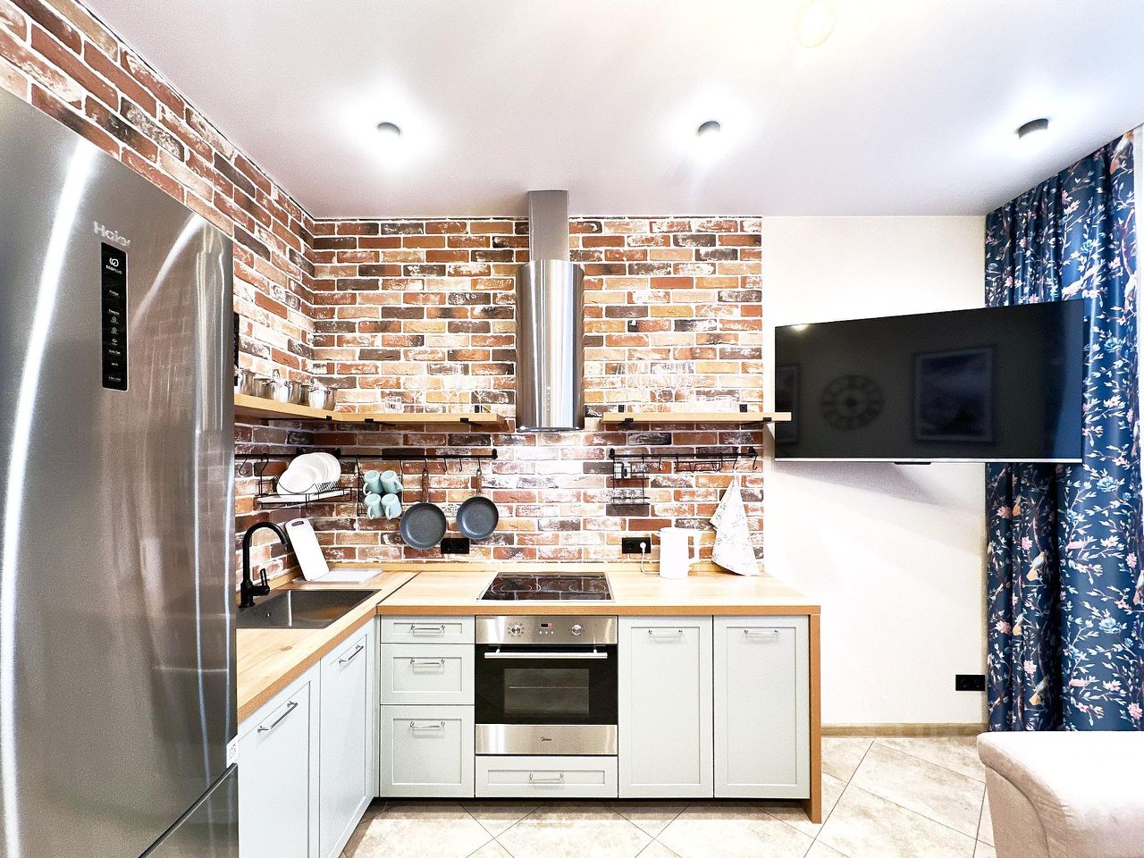 Квартира полностью меблирована, имеется вся необходимая встроенная бытовая техника.