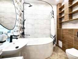 Квартира с дизайнерским ремонтом, продуманным до мелочей. В комнатах и на кухне есть вся необходимая мебель. Для вашего удобства установлены кондиционер, холодильник, стиральная машина, телевизор и посудомоечная машина. Санузел совмещенный, оснащён ванной.