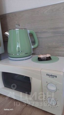 Газовая панель, холодильник, чайник и микроволновка.