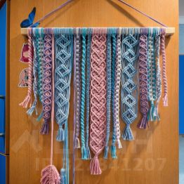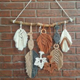 В квартире много натуральных материалов — кирпичная стена, дерево, текстиль и 4 больших панно макраме. Атмосфера спокойствия и уюта.