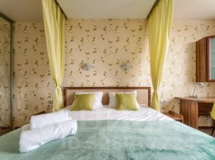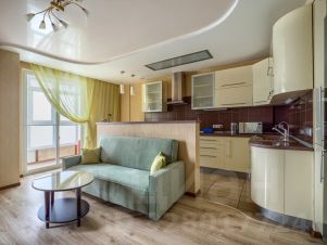 Удобства: Железная дверь и домофон в подъезде обеспечат вашу безопасность. Совмещённый санузел с джакузи. Кухня полностью оборудована всем необходимым: плита, СВЧ-печь, электрочайник и холодильник. В квартире также есть Wi-Fi, телевизор, стиральная машина, сушилка, гладильная доска и утюг.