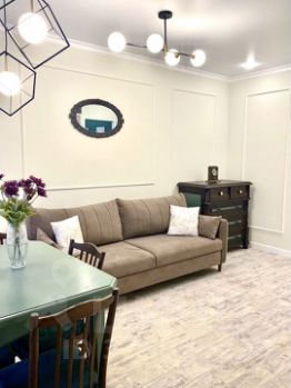 В наших уютных двухкомнатных апартаментах оборудована современная кухня с посудомоечной машиной, духовым шкафом и микроволновой печью, есть стиральная машина с функцией сушки, кондиционер, тв с 300 каналами, wi-fi, кровать с ортопедическим матрасом, вместительные шкафы, предоставляется чистое бельё из страйп-сатина, полотенца, утюг с гладильной доской, а настоящей изюминкой квартиры, является возможность почитать из нашей библиотеки понравившуюся книгу.