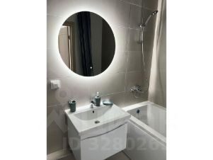 Квартира исполнена в стиле минимализм, ничего лишнего, студия визуально разделена диваном на две зоны,: кухонная зона отделена от гостиной зоны. Имеется объединённый сан-узел