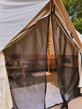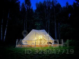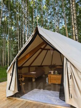 Авторские шатры из натуральных дышащих материалов, хорошо удерживающих тепло. В одном шатре может находиться 2-4 человека. Освещенная территория, а также наличие электричества внутри. Рядом с шатром мангал и решетка.
