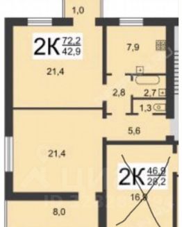 Предлагаю вашему вниманию уютную и просторную двухкомнатную квартиру 72,9 кв.м : 2 большие комнаты по 21,4 кв.м с высокими 3 м потолками, в тихом и спокойном месте. Она расположена в пешей доступности 5-7 мин от продовольственных магазинов и общественного транспорта. В квартире бабушкин ремонт. Она полностью меблирована и оснащена следующей бытовой техникой: стиральная машина, микроволновка, два раскладных дивана, одна односпальная кровать с хорошим ортопедическим матрасом, два телевизора, холодильник, плита Кайзер с электрическим духовым шкафом и газовой варочной поверхностью, также есть кухонная посуда: ложки, вилки, ножи, тарелки, кастрюли, сковородки, утюг, полотенца, подушки, одеяла.