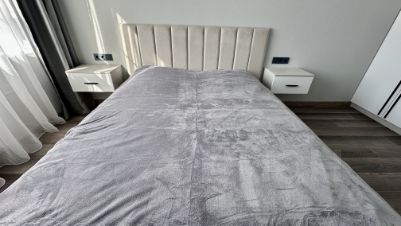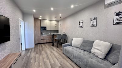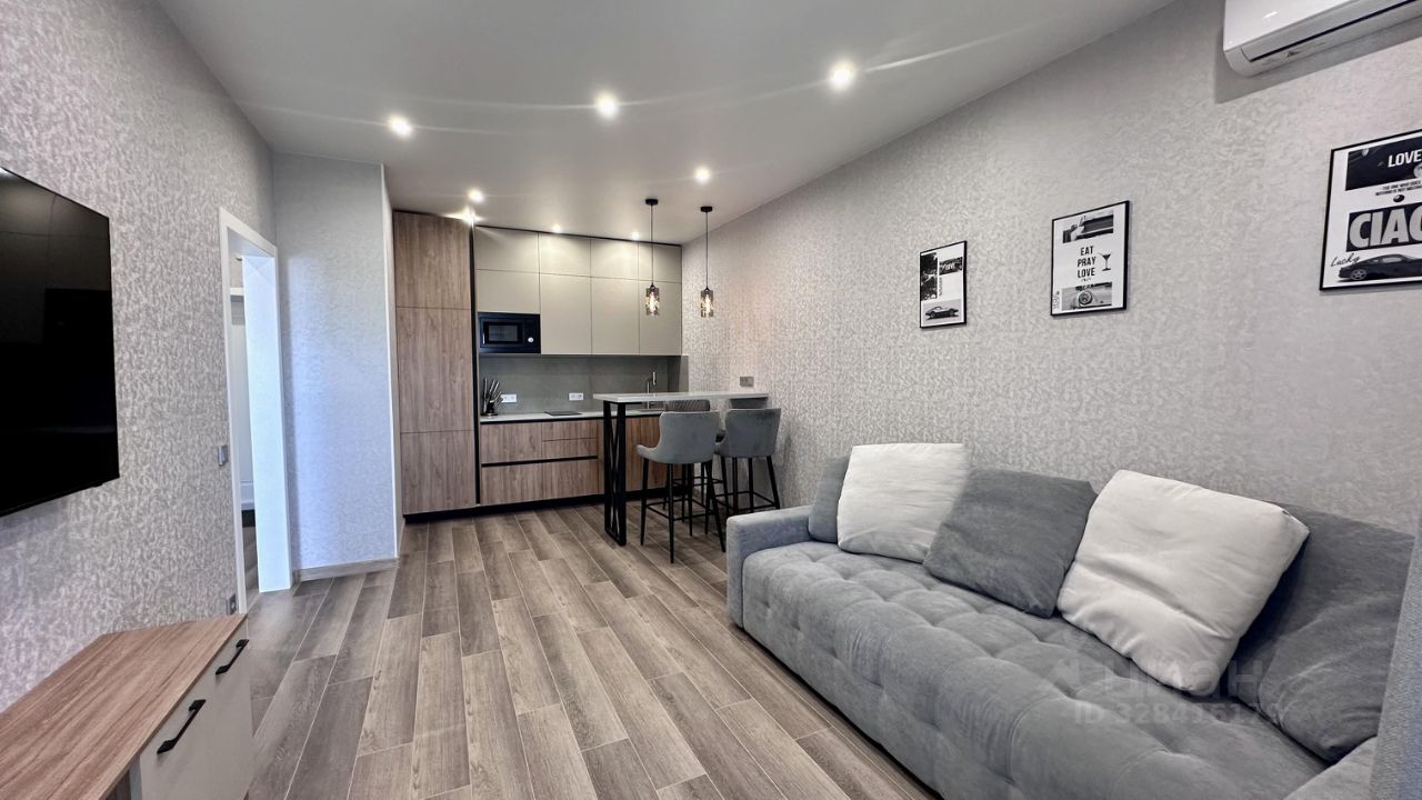 Общ. пл. 45 кв.м.. Планировка: кухня-гостиная, спальня, санузел совмещен. Квартира полностью укомплектована всей необходимой мебелью и техникой для комфортного проживания. Для хранения вещей предусмотрено два вместительных 3-створчатых шкафа. Установлены 2 кондиционера, посудомоечная машина.