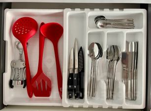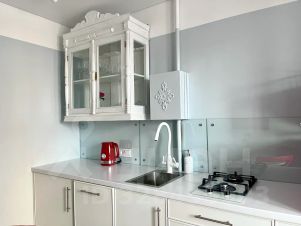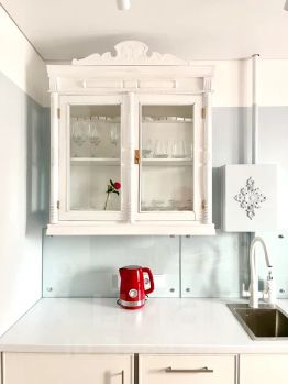 - кухней, укомплектованной всей необходимой посудой(в т.ч для приготовления пиши), холодильником, микроволновкой, чайником, посудомоечной машиной, стиральной машиной, системой для очистки воды Гейзер - питьевая вода из крана