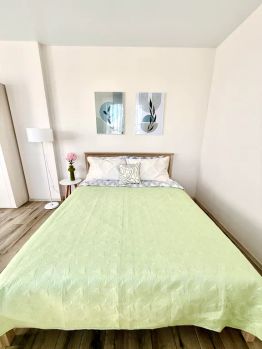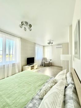 Квартира полностью меблирована и оборудована всем необходимым для комфортного проживания. В ней есть удобная двуспальная кровать с ортопедическим матрасом, односпальный диван. Интерьер квартиры выполнен в современном стиле с использованием приятных и теплых оттенков.