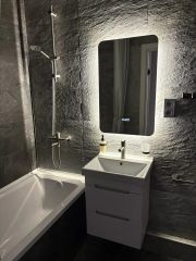 • в ванной мойдодыр, бойлер, качественные смесители, стиральная машина.