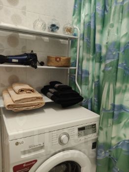 В квартире есть все для комфортного проживания: 2 кондиционера (в спальне, в зале), телевизор, wi-fi, стиральная машина, напольная сушилка для белья, гладильная доска, фен, белое чистое постельное бельё и полотенца, а так же одноразовые тапочки, одноразовый набор паста+щетка в индивидуальной упаковке, шампунь и гель для душа в индивидуальной упаковке, ватные палочки и диски, капсулы для стирки, средство для мытья посуды.