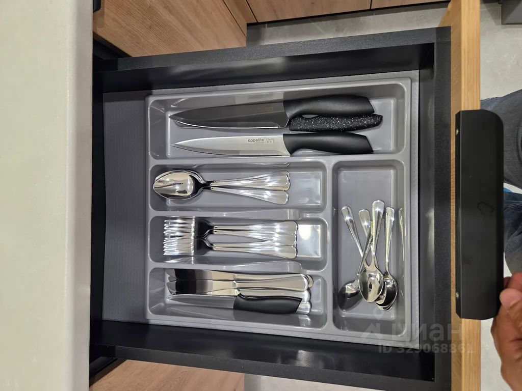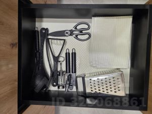 - кухонные принадлежности: ножи, разделочные доски, кастрюли, сковороды